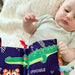This fabric activity book is designed for babies from birth and includes one book with multiple pages to explore. It features varied textures, contrasting colors, and gentle sounds for hands-on interaction during playtime. The compact size makes it suitable for use at home or while traveling.